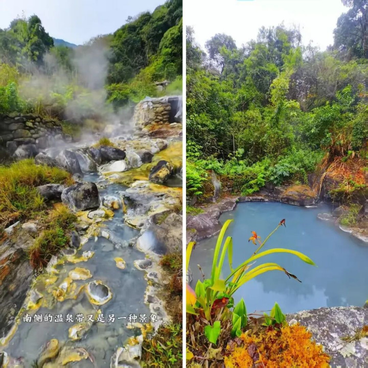 △左边河流,右边泡池,研究员夸这里“亲水氛围不错”。(图/@温泉研究员)