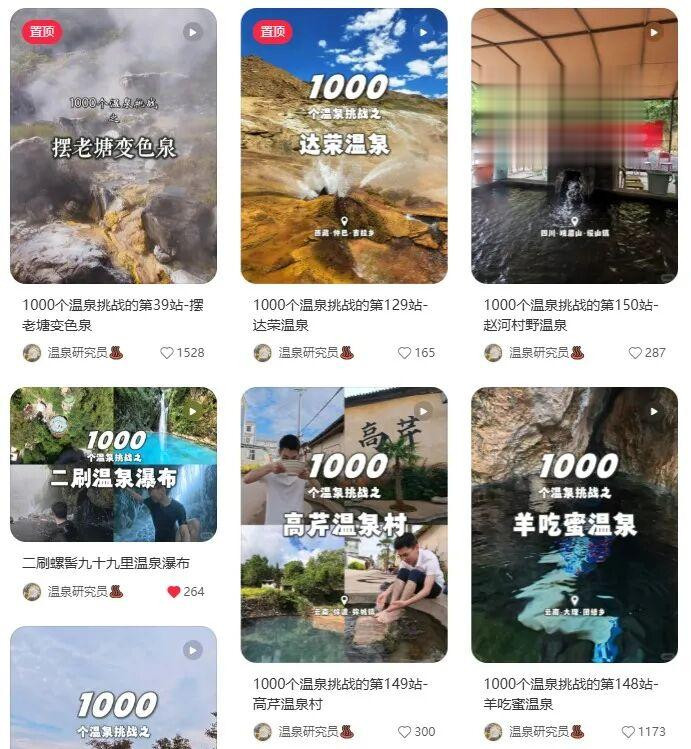 △温泉研究员的“1000个温泉挑战”页面。(图/小红书截图)