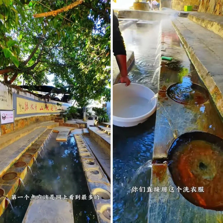 大理弥渡县的夹石洞温泉,没有任何商业包装。村道旁的温泉池子,当地人会杀鸡宰鹅、洗菜淘米。当地温泉水偏碱性,用来洗碗能把油污洗得干干净净。村子另一头的温泉池是泡脚专用,村里的老人习惯一边泡脚,一边跟乡亲闲话家常。