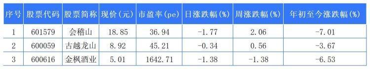 会稽山以2.06%列黄酒股周涨幅第一