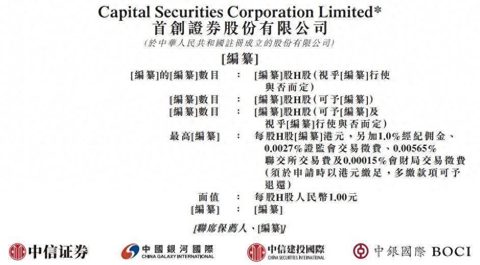 联席保荐人:中信证券(香港)有限公司、中国银河国际证券(香港)有限公司、中信建投(国际)融资有限公司、中银国际亚洲有限公司