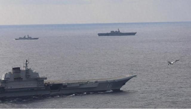 据报道,辽宁舰甲板上停放着8架歼-15战机和多架直升机,呈典型的作战配置,全舰高度戒备。只要一声令下,歼-15可以直接起飞执行任务,无论是拦截、威慑还是打击,都是即时的。
